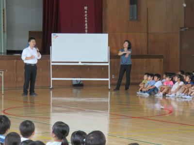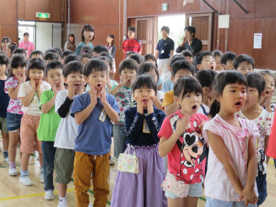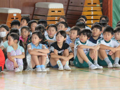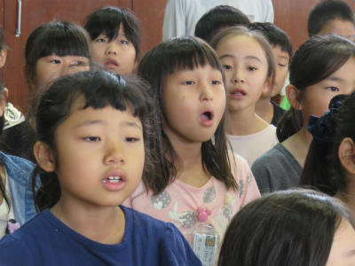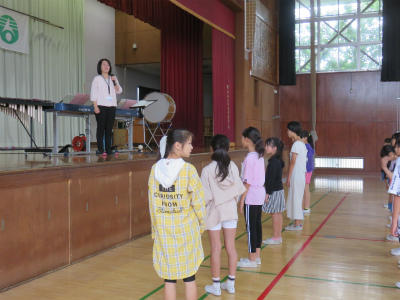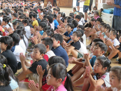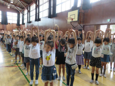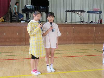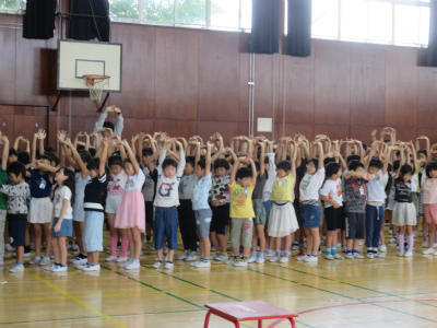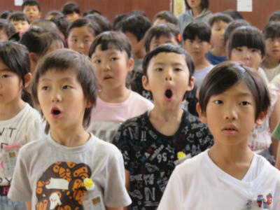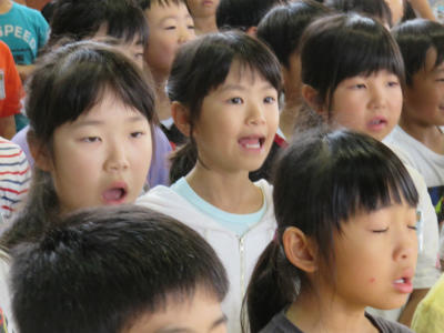 7月10日(水)朝、体育館において「7月の音楽朝会」がありました。今月の歌は、「勇気100パーセント」です。元気に歌いました。音楽委員のみなさん、ありがとうございました。