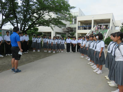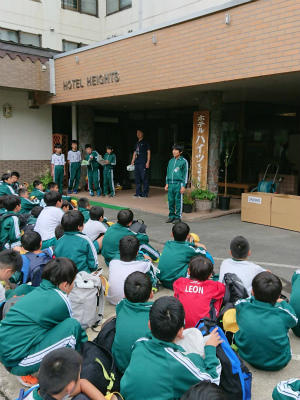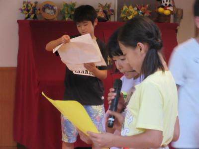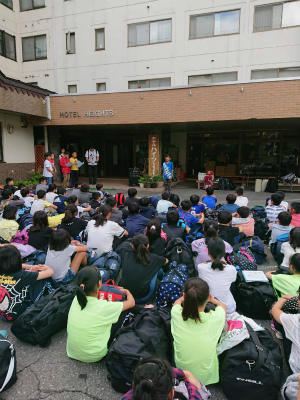 7月27日(土)16:10、学校に到着しました。閉校式です。立派な態度で林間学校を締めくくりました。みなさん、ご苦労様でした。教頭先生からもお褒めの言葉をたくさんいただきましたね。