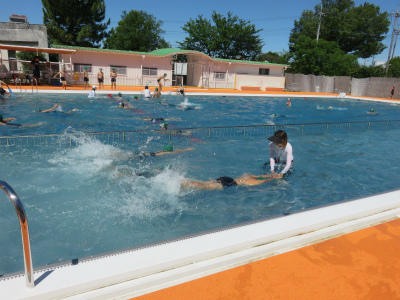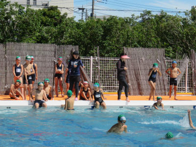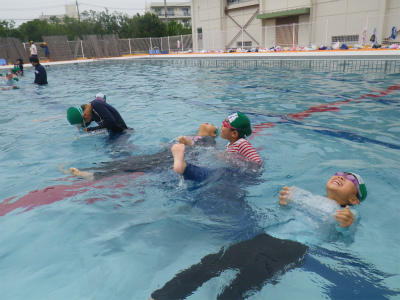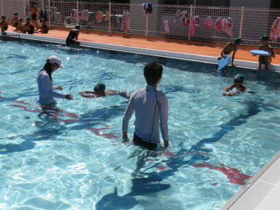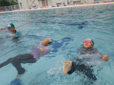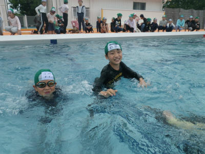 7月29日(月)今日は、気温が上がりました。いよいよ夏本番です。そろそろ梅雨も明けそうですね。日焼けした姿も目立つようになりました。高学年の部では、泳力がアップしているのを感じました。2年生は、先生と水をかけっこしたり、バタ足をやったり、楽しくて楽しくて歓声があがっていました。やっと夏らしくなりました。