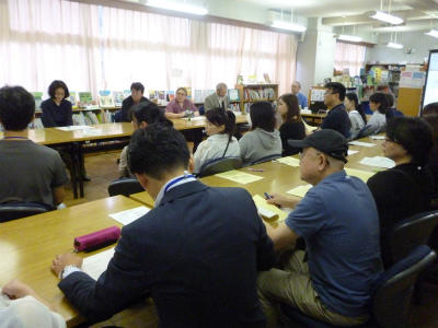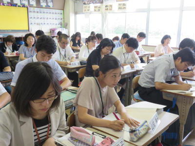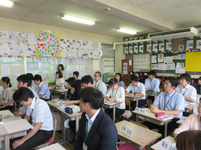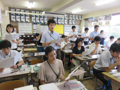 実際に教室を使って、先生たちが子ども役になり実際の授業を体験しました。福田先生の授業はたくさんの工夫がなされ、子どもの活動量が多く、あっという間に授業が終わってしまう、という感じでした。細かな指導のポイントにも触れ、丁寧に御指導いただきました。ありがとうございました。立野小は今年も授業力アップに向けてまい進します。