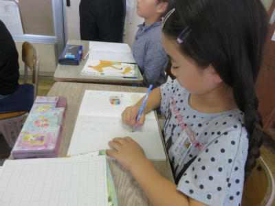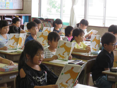 2年2組からは、元気な音読の声が聞こえてきました。登場人物のせりふには気持ちを込めようね、と先生から教えていただきました。