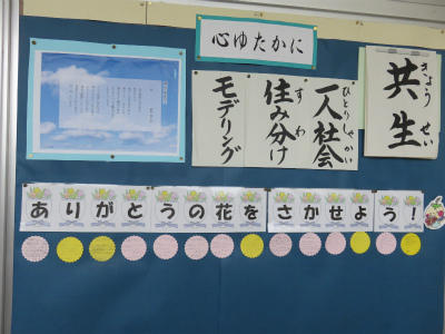 5年生の廊下には、「心豊かに」のコーナーがあります。