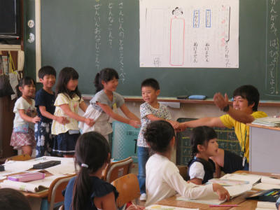 7月3日(水)10:00~なかよし学級教室において、「立野小学校・大増中学校交流会」が開かれました。グループで協力して、七夕飾りを作りました。大増中学校のみなさんには、とても丁寧にそして熱心に、小学生に声をかけていただきました。「あんなお兄さん、お姉さんになりたい」という思いを小学生は抱いたと思います。ありがとうございました。