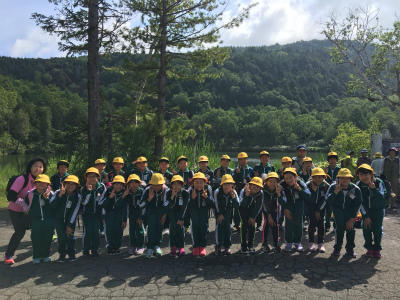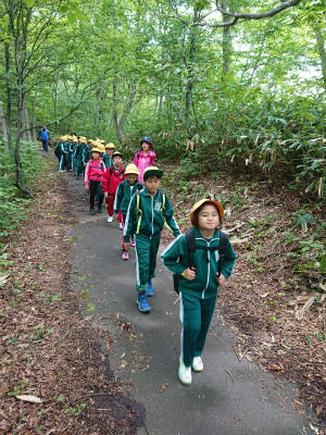 このあとは、志賀高原の自然についてビデオ鑑賞をし、ハイキングを再開します。その後は、琵琶池を目指します。あと少し!5年生、頑張れ!!