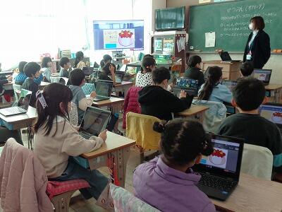 また、今日はICT支援員さんの来校日。ICT支援員にいろいろなことを聞きながら学習端末を使った学習が行われていました。