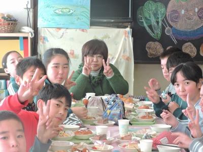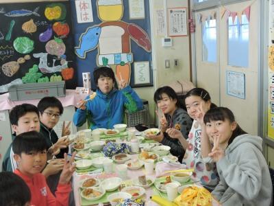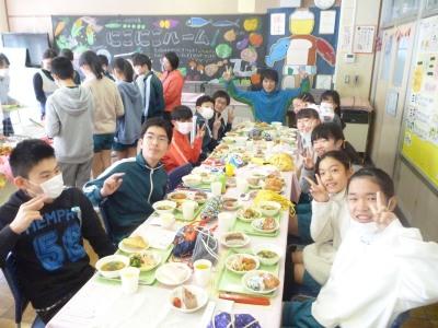 2月27日(木)昼、にこにこルームで6年4組の卒業バイキングがありました。楽しむことはもちろん、栄養教諭や調理員さんに感謝の気持ちを抱きながら、味わって食べていることが伝わりました。校長、教務主任が招かれました。おもてなし、気遣いなど最高のできでした。今日も完食。今年の卒業バイキングも今日でおしまいです。