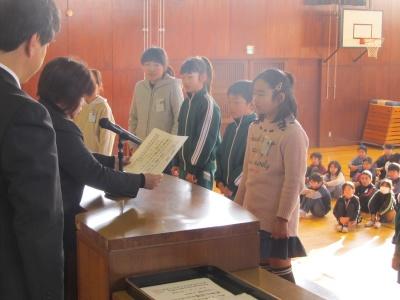 2月5日(水)朝、体育館において「表彰朝会」が行われました。
