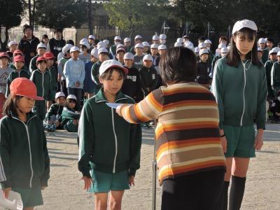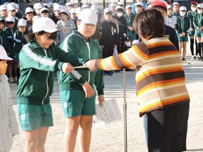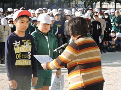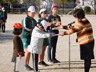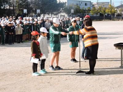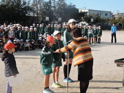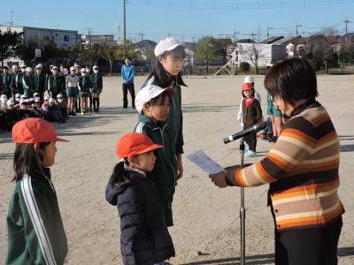 ご報告が遅くなりました。2月6日(木)朝、校庭において元気タイムがありました。今日は、校内なわとび大会の表彰式です。優秀な成績をおさめたチーム、クラスに表彰状が贈られました。優秀チームの試技もあり、高学年の縄まわしの速さに歓声が上がっていました。みなさん、よくがんばりましたね。