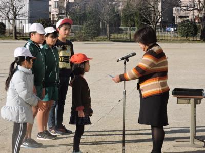 終了後、体育主任から話がありました。2月の生活目標は「寒さに負けず元気に運動しよう」です。寒さが厳しくなってくると、朝の動きが鈍くなるようです。8時のおは走に間に合わない子どももいます。そんな中、毎朝1番に校庭に出てくる4年生の男子他、おは走に頑張っている子どもが紹介されました。