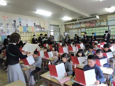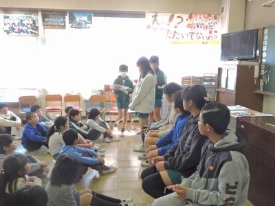 2月13日(木)昼、1年間一緒に過ごしてきたなかよしタイム(縦割りのグループ)の解散式が行われました。5年生が進行し、6年生が入場しました。その後ひとりずつ感想を述べ、6年生に卒業おめでとう集会への招待状渡しを行いました。みんなでなんでもバスケットをして一緒に遊びました。