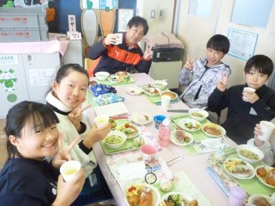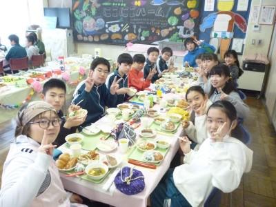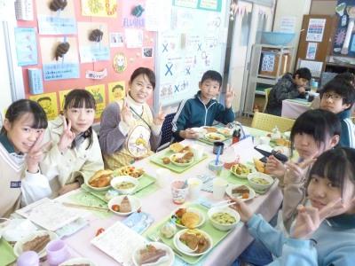 2月27日(木)昼、にこにこルームで6年4組の卒業バイキングがありました。楽しむことはもちろん、栄養教諭や調理員さんに感謝の気持ちを抱きながら、味わって食べていることが伝わりました。校長、教務主任が招かれました。おもてなし、気遣いなど最高のできでした。今日も完食。今年の卒業バイキングも今日でおしまいです。