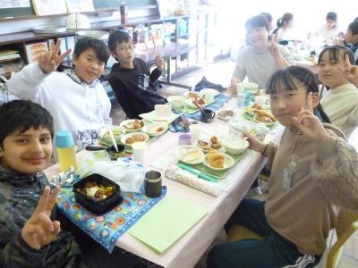2月18日(火)昼、今日は「卒業バイキング」の日です。6年1組がにこにこルームに集まりました。卒業を祝って、たくさんのお料理が所せましと並んでいます。ワクワクします。揚げパン、クロワッサン、おにぎり、しゅうまい、チーズボール、唐揚げ・・・。布目先生、調理員のみなさんに感謝です。情報によると、6年生はバイキングの練習を1週間したそうです。さすが、練習の成果がでていました。そして見事完食。校長もお招きをいただきました。とても楽しく、おいしかったです。ありがとうございました。