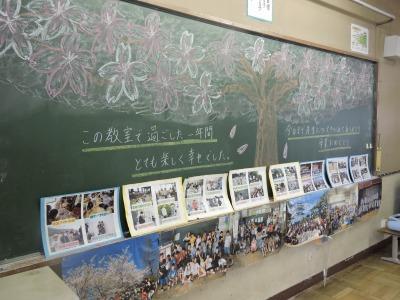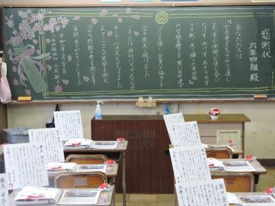 朝、6年生の教室に行ってみました。なんとも、子どもたちへの愛が溢れる教室です。校長として手前味噌ですが、素晴らしい教師集団です。愛情にあふれた担任たちです。子どもたちにとって最高の日となることを願っての、この教室なのでしょう。そして、中庭に向かう通路には6年生のその時々の決意を表す横断幕を飾っています。何時間もかけて、たくさん相談を重ねて、今日の朝を迎えたのだと思います。校長も遅ればせながら、子どもたち一人ひとりに色紙をしたためました。自分なりに考えた名前の由来です。ご両親や名付け親の気持ちに反するものでないといいのですが。丁寧にスタンドに立てかけていただきました。