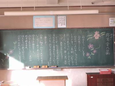 3月24日(月)、昨日卒業証書授与式が終わりました。何だか寂しいですね。6年生ともう毎日は会えないのだなぁと思うだけでぽっかり心に穴が空いたように思います。4月からは中学生。地面にしっかり足をつけて進んでくださいね。