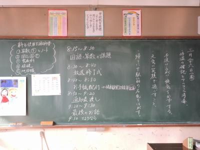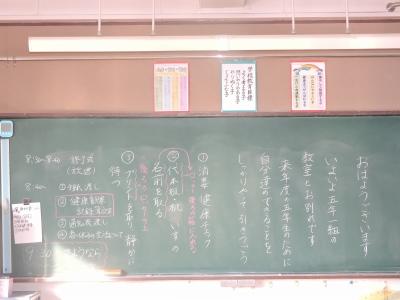 いつものように、教頭先生が朝早く教室を訪問しました。まだだれも登校していない教室はいつもにも増して凛として、それでいて、担任の先生方の温かいメッセージに包まれているようです。7時30分を過ぎると、元気な顔が揃います。