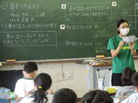 きょうは秋らしい気候で、学習に適した気温になりました。休み時間も元気いっぱいです。3年生では、教育実習生の野菜の大切なはたらきを学ぶ授業がありました。