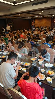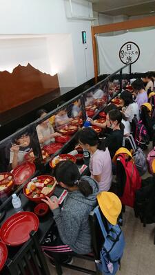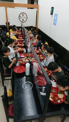 昼食会場に到着しました。林間学校最後の食事になります。湯葉が使われたメニューになります。日光の特産品である湯葉をおいしくいただきましょう。