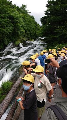 林間学校、3つめの滝に着きました。それぞれ異なる滝を見学してきています。