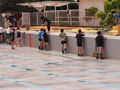プール開きに向けて、5・6年生がプール清掃をしてくれました。一人一人が意欲的に取り組んでくれたので、プールはあっという間にきれいになりました。きれいになったプールを見て、みんなが、このプールに入ることを楽しみにしていることでしょう。