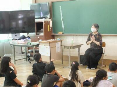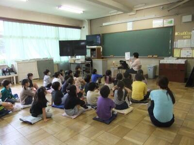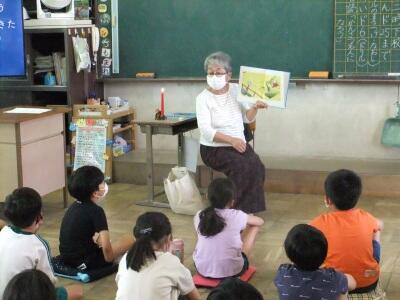 今日は、春日部おはなし会の方をお招きし、1年生でおはなし会が行われました。