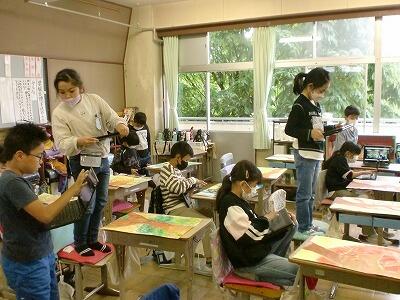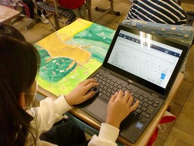 4年生は、図工の作品をタブレットで撮影し、作品紹介を作っていました。