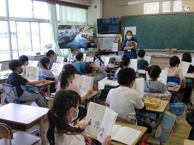 1組は、『どうながのプレツェル』、2組は『こいぬがうまれるよ』、3組は『はなのあなのはなし』の絵本を読んでいただきました。どのクラスも話の世界に引き込まれ、食い入るようにお話を聞いていました。