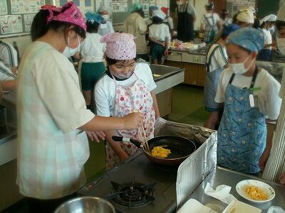 昨日に引き続き、今日も楽しい調理実習がありました。今日は6年生が「スクランブルエッグ」に挑戦していました。炒め具合を確かめながら、一人一人が調理に取り組んでいました。