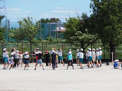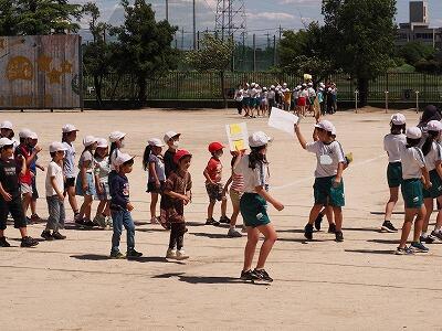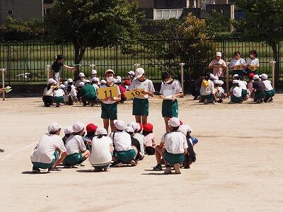 昼休みには、「なかよしタイム団結式」を行いました。なかよしタイムでは1~6年生が縦割り班で遊びます。今日は、初めてのなかよしタイム。グループごとに自己紹介をし、ゲームをしました。