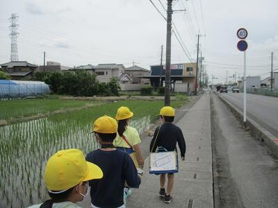 立野小学校の周りには、中学校や高校、田んぼや病院、薬局、高齢者福祉施設などがあります。3年生は、総合の学習の一環で、学校周辺の様子を見て歩きました。