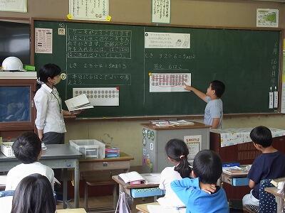 3年生で、算数の研究授業を行いました。わり算の学習で、子どもたちのつまずくことが多い学習内容です。子どもたちは、図を使いながら答えの求め方を発表していました。