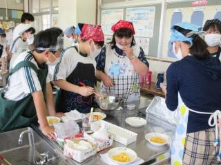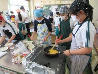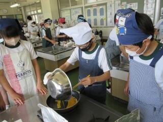 6年生は、家庭科の調理実習でスクランブルエッグを作っていました。