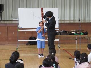 「リコーダーは、トゥーと優しく吹く。ろうそくの火をそっと揺らすくらいですよ。」と教えてきただき、自分の指をろうそくの炎に見立てて吹く練習をしました。