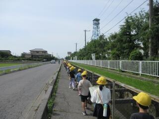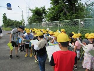 3年生は、社会科の学習で「学校周辺の土地の使われ方を調べてること」、総合の学習で「学校周辺の安全マップを作ること」ことを目的に出かけました。