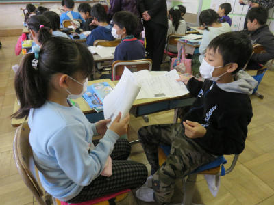 3月1日(木)1校時、佐藤教諭による2年2組、国語科研究授業が行われました。「スーホの白い馬」を読んで、登場人物の様子を読み取る、という授業でした。