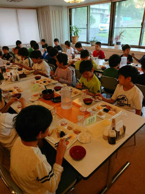 今日の朝食は、春巻き、ウインナー、卵焼きかな?感謝していただきましょう。