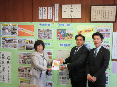 3月23日(金)15:30~校長室において、千葉銀行様ならびにエスケートレーディング様よりの目録の贈呈式が行われました。