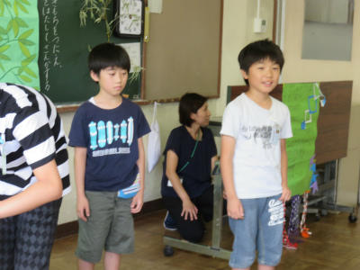 7月3日(水)10:00~なかよし学級教室において、「立野小学校・大増中学校交流会」が開かれました。グループで協力して、七夕飾りを作りました。大増中学校のみなさんには、とても丁寧にそして熱心に、小学生に声をかけていただきました。「あんなお兄さん、お姉さんになりたい」という思いを小学生は抱いたと思います。ありがとうございました。
