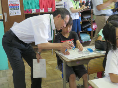 実際に教室を使って、先生たちが子ども役になり実際の授業を体験しました。福田先生の授業はたくさんの工夫がなされ、子どもの活動量が多く、あっという間に授業が終わってしまう、という感じでした。細かな指導のポイントにも触れ、丁寧に御指導いただきました。ありがとうございました。立野小は今年も授業力アップに向けてまい進します。
