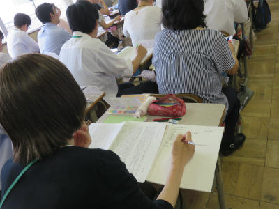 7月3日(水)15:00~、6年2組の教室において校内研修会を開きました。今日は、久喜市立鷲宮小学校の福田先生に御指導いただきました。説明文研修会です。