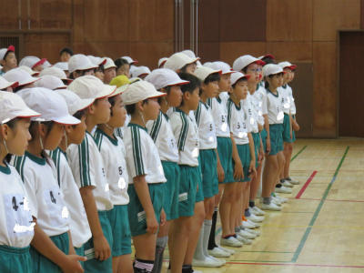 5月26日(金)あいにくの雨模様です。市内陸上大会もいよいよ迫ってきました。今日は、雨のため体育館に集合し、朝の陸上練習をしました。昨日は、選手の発表があり、今日はユニフォームの配布があります。子ども達の気持ちも高まってきました。山﨑先生からは「選手になれてもなれなくても同じ。今まで練習してきた過程が大切。選ばれた人はそうではなかった人の分まで頑張ろう。」というお話がありました。