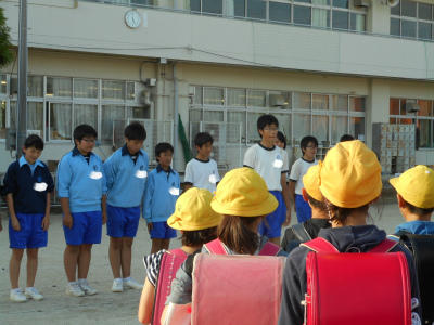 5月19日(金)毎朝の「おは走」に引き続き、今日は「元気タイム」です。今日は、「立野っ子体操」と「8秒走」にチャレンジしました。「立野っ子体操」は音楽に合わせて、いろいろな動きをし、筋力のアップを図ります。運動委員のみなさんが、低学年の児童の前に立って示範します。「8秒走」は時間内、8秒の走りを続け、持久力のアップを図ります。先生たちも一緒に汗を流します。後は学年ごとに行進の練習です。大きく腕を振り上げ、姿勢よく行進ができました。さすが立野っ子です。