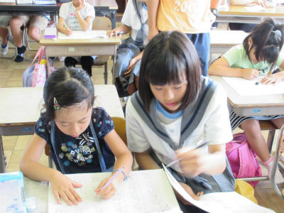 今日から夏休み。7月21日(金)「ステップアップ教室」が始まりました。これは夏休み中12日間の勉強会です。今日から3日間は、大増中学校のみなさんが、学習の補助してくださいます。お忙しい中、ありがとうございます。子ども達も真剣に、そして積極的に学習ができました。