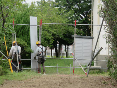 8月20日(月)いよいよプール改修工事が始まりました。当面の間、北門からの出入りができなくなります。また、中庭の一部が職員の駐車場となります。ご不便をおかけします。また、工事車両等も出入りします。御来校の際は、十分にお気を付け下さい。