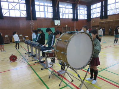 12月12日(水)朝、体育館において「音楽朝会」が行われました。元気な歌声が体育館いっぱいに響きました。1年生も元気いっぱい。この雨も上がるでしょう。