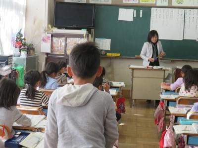 11月27日(月)3校時、4年1組において髙島教諭による学級活動授業研究会が行われました。11月17日(金)にアンケート調査を行い、22日(水)には道徳の授業において命をいただくことについて学習をしました。今日は、望ましい食習慣の形成について、栄養教諭の布目先生がT2として授業に臨みました。食べ物になるものの命やそれを調理してくれる人がいらっしゃることをあらためて考えました。