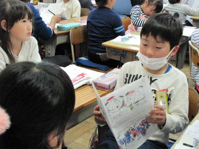 11月27日(月)2校時、1年1組において新井教諭による国語科研究授業が行われました。くらべてよもう「じどう車くらべ」を教材とし、クレーン者の「しごと」と「つくり」を読み取ることを目標としました。ワークシートをペアで見合い、自動車図鑑に付け加えることを考えました。積極的に授業に取り組むことができました。