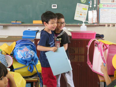 6月14日(金)とてもさびしくなりました。実は、今週の月曜日から海外からの体験入学生を受け入れ、1年1組で一緒に過ごしました。とてもかわいらしい男の子でした。今日でお別れです。一緒にプールに入ったこと、算数のお勉強をしたこと、給食を食べたこと、校長室にインタビューに来たこと。いろいろなことが思い出されます。物おじせず、果敢に日本の文化や生活と向き合った彼からたくさんのことを学びました。