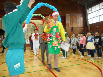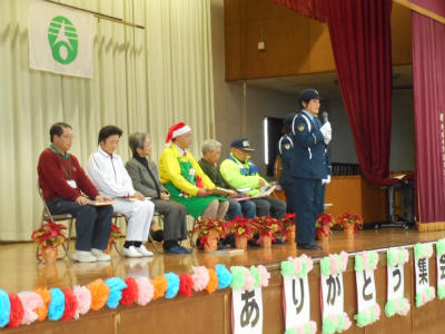 この集会は11月23日(木)「勤労感謝の日」にちなみ、日頃お世話になっている交通指導員さん、スクールガードリーダーの皆さん、おはなし会の皆様、調理員さん、校務員さんに感謝の気持ちを伝えようと実施されたものです。