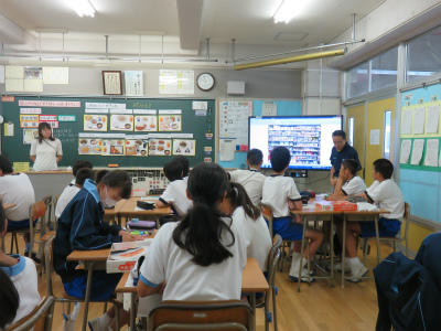 9月6日(木)9:10~本校栄養教諭が、大増中学校で「食の授業」を行いました。今日は、1年生3クラスのみなさんんと「思いっきりがんばれる 体をつくる食事を考えよう」という授業です。本校と大増中学校は「つながる食育」のモデル校として、連携を重ねています。