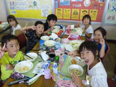 7月11日(水)1年2組は、にこにこルーム(ランチルーム)で給食を食べました。いつもとは違った雰囲気の中、楽しく給食を食べることができました。1年生も、活動力が多くなってお腹もすくようになりました。モリモリ食べて大きくなりましょうね!